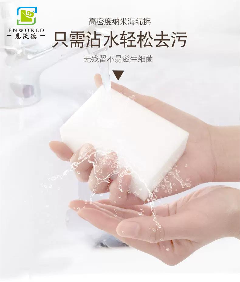 用抹布來清潔物品時,需要大量的洗滌劑來輔助抹布去污,抹布擦拭完之后,還需要用清水來沖洗,并且抹布上也會粘連許多的污垢,清洗時還需要洗滌劑才能清洗干凈抹布,很多時候還很難把抹布清洗干凈,而且濕潤的抹布放在室內非常的不容易晾干,時間久了會滋生許多的細菌。使用納米海綿清潔物品可謂是信手拈來,納米海綿是采用純物理去污的機理,依靠其內部的毛細管開孔結構。在濕潤后呢可自動吸附物體表面的污漬。它的去污能力強,一般清潔劑無法清潔的污垢都可以輕松去除;適用于凹凸不平面,任何深藏的污垢,只需清水,一擦即凈;使用起來也非常方便,可按需求切割成大小不一的形狀;還具有99.99%的 自然抗菌效果,不用擔心會有細菌的滋生。清潔完之后把納米海綿放在清水下沖洗,不必擰搓,污垢可自行溶出,晾干后可以反復使用。使用納米海綿來清潔不僅省時省力,還健康、環保、無污染。