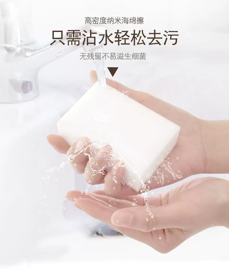 將納米海綿放在清水中沖洗,不要擰搓,污漬可自行融出,晾干后可反復使用。